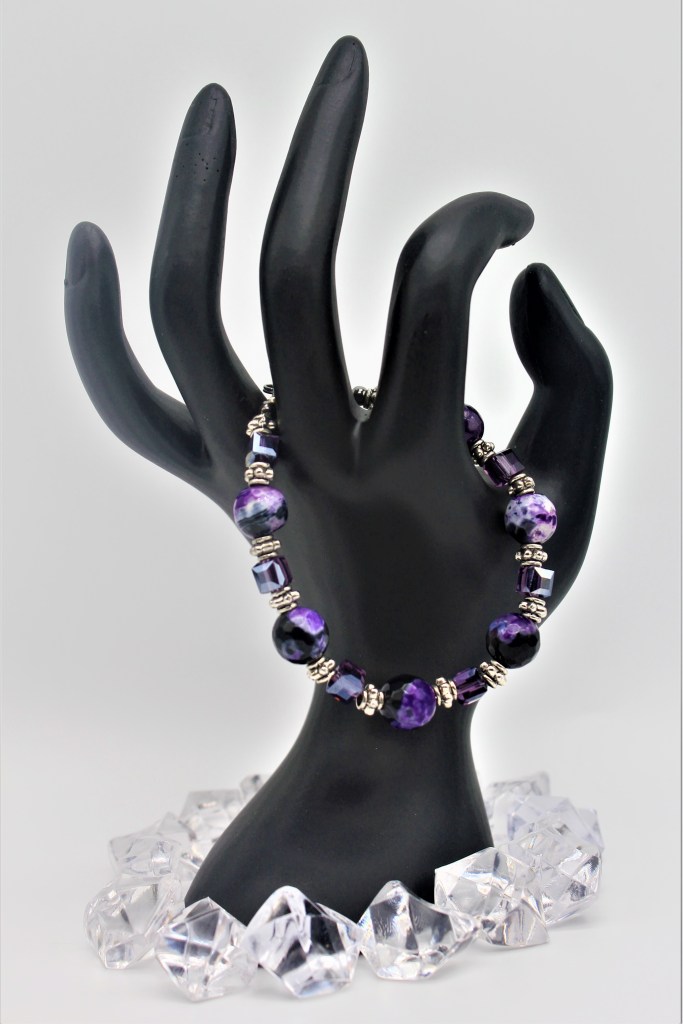 ASP Agate Black, Purple and white beaded bracelet with magnetic clasp