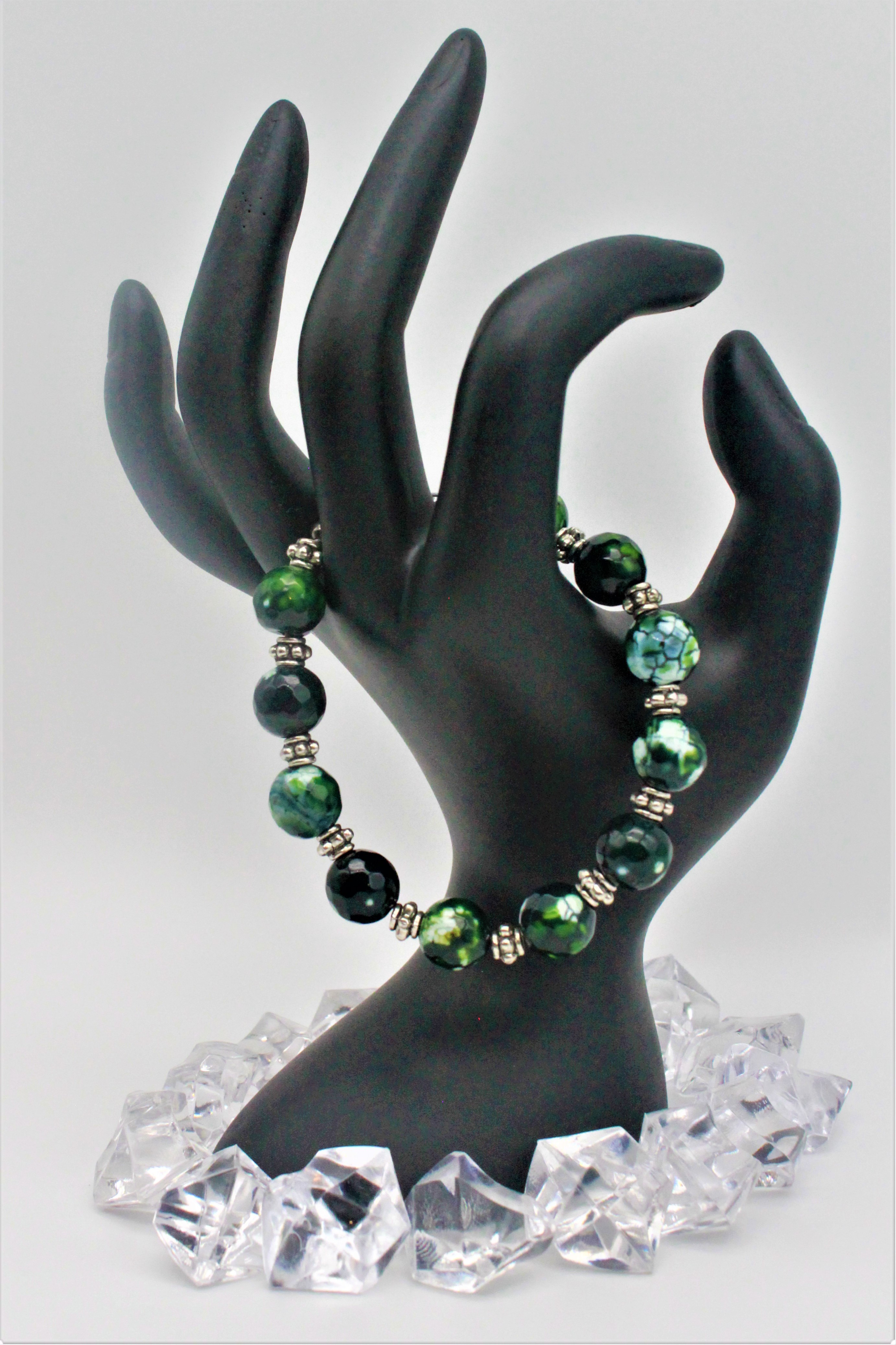 This marvelous black, green and white agate gemstone bracelet would be a great addition to anyone’s collection. With an addition to that its (ASP) antique silver-plated spacers and gun-metal magnetics clasp is captivating to behold.