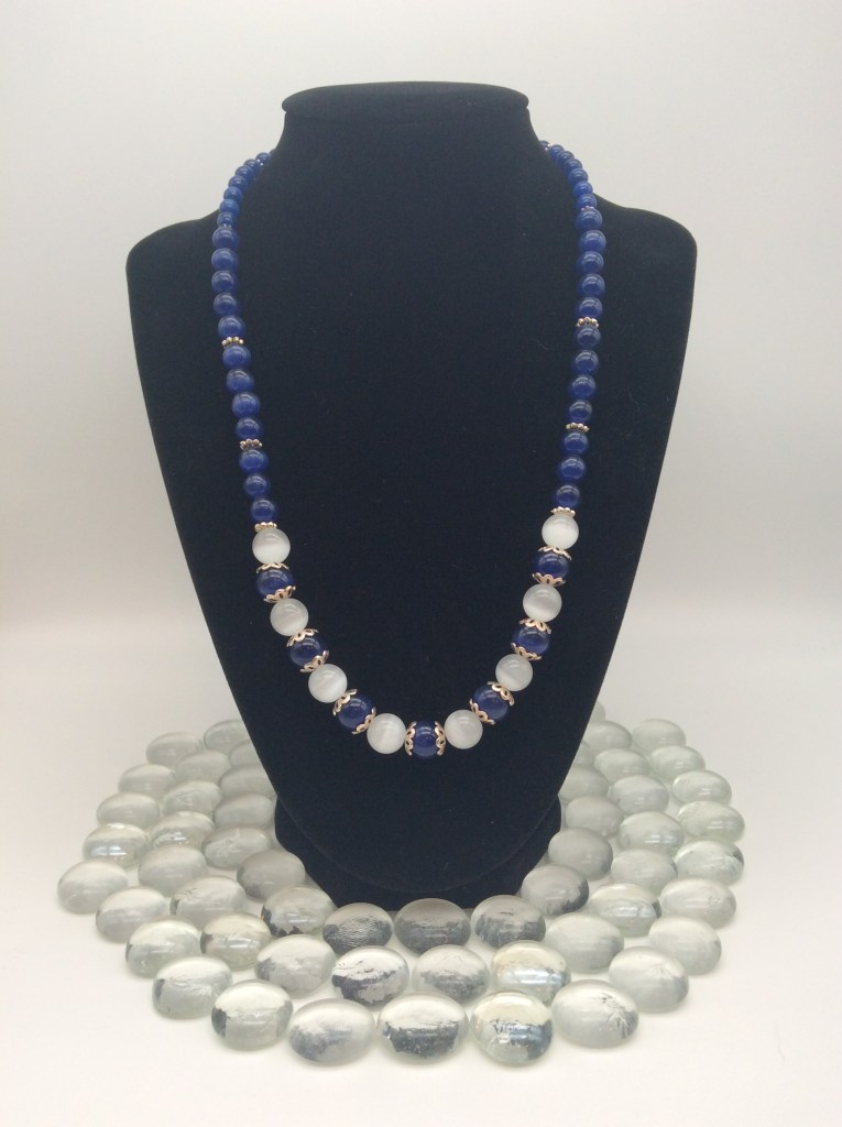 Dark blue and white cat eye necklace with SP Lobster Claw